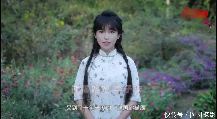 10月23日,身穿淡色旗袍,扎着两根长辫,留着都眉刘海,孤苦中国风的打扮的李子柒以“熊猫姐姐”的身份,在“强国熊猫周”宣传视频中出头。