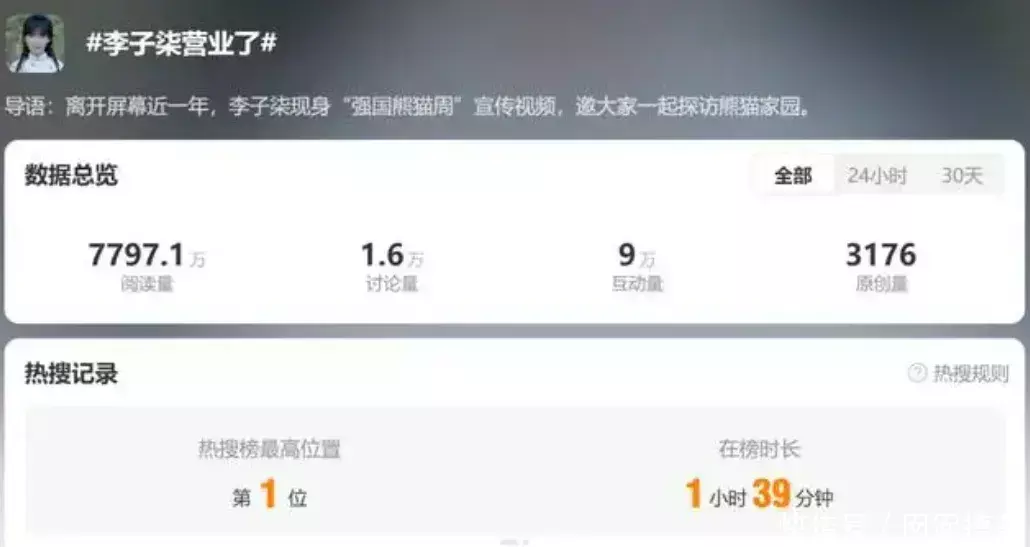 其实这并不是李子柒停更后第一次出头。就在不久前,李子柒现身“强国熊猫周”宣传视频。径直让话题#李子柒交易了#冲上热搜第一。