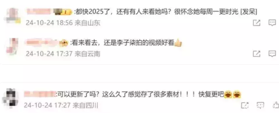可见大众对她的喜爱永远莫得削减,在这个善变的集结期间,即使停更三年,网友们如故对李子柒充满期待。