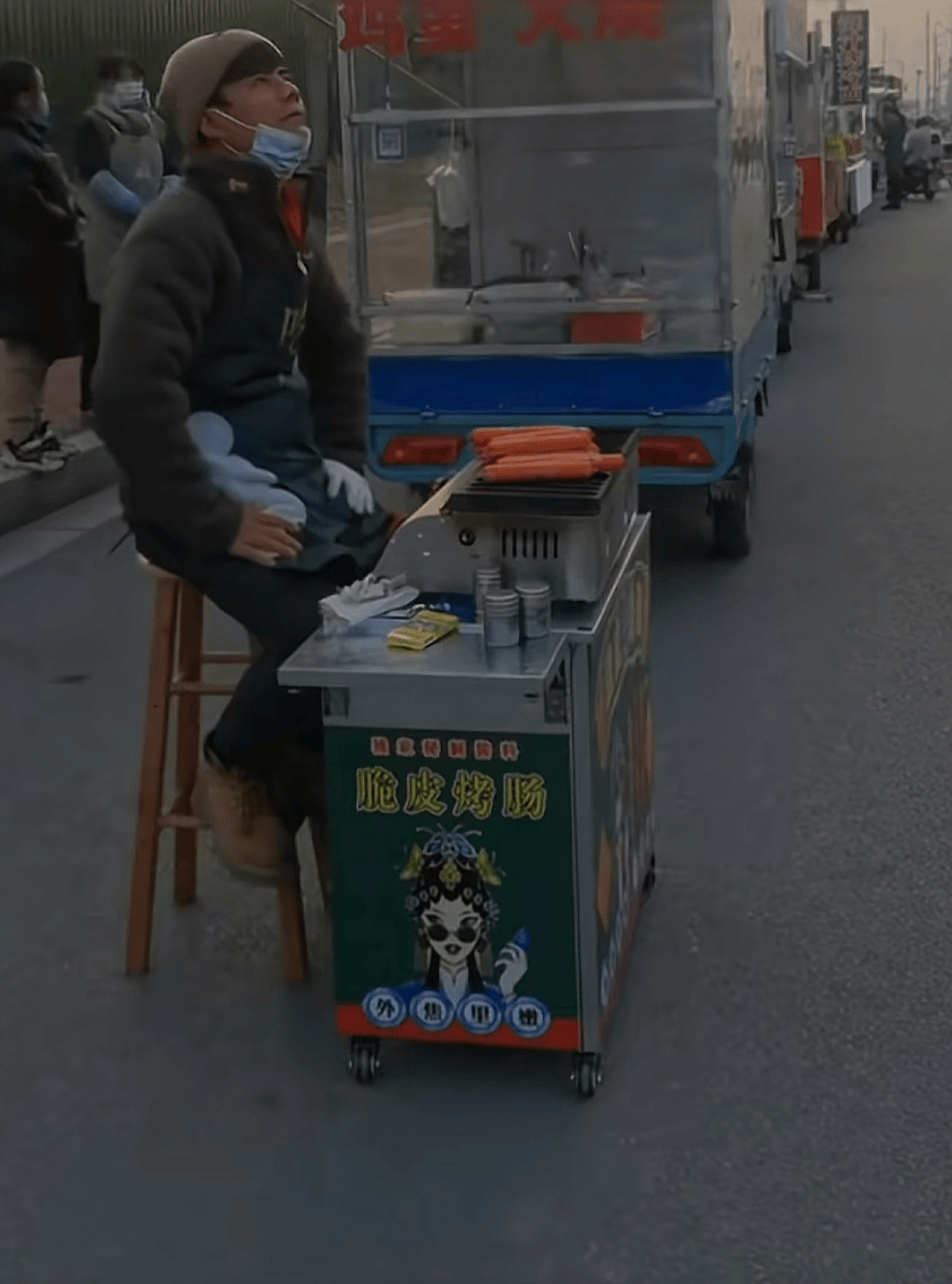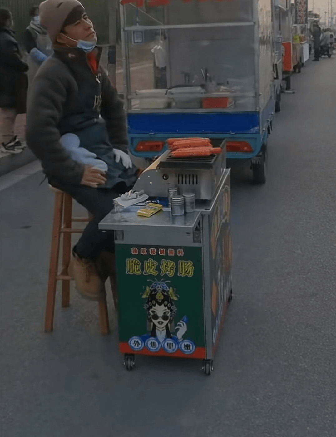 有些东说念主以为刘晓东发这些视频可能是为了博热度,但看过他的账号和发布技巧就不难详情,刘晓东的近况实在很贫穷,黎明七点多就出门摆摊,视频中的刘晓东衣着灰色外套戴着帽子,坐在街边的凳子上守着我方的烤肠机,形势看上去格外惆怅